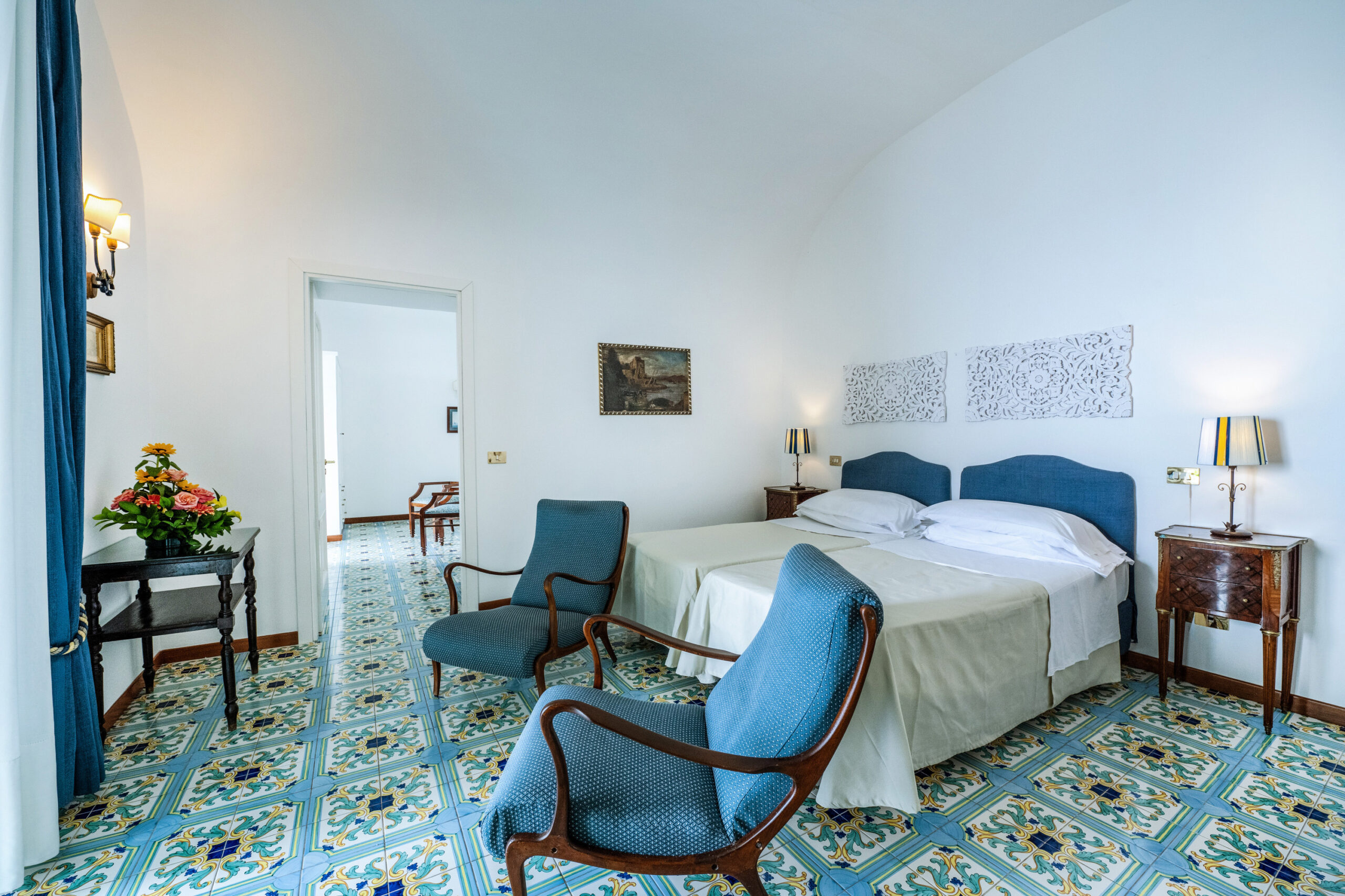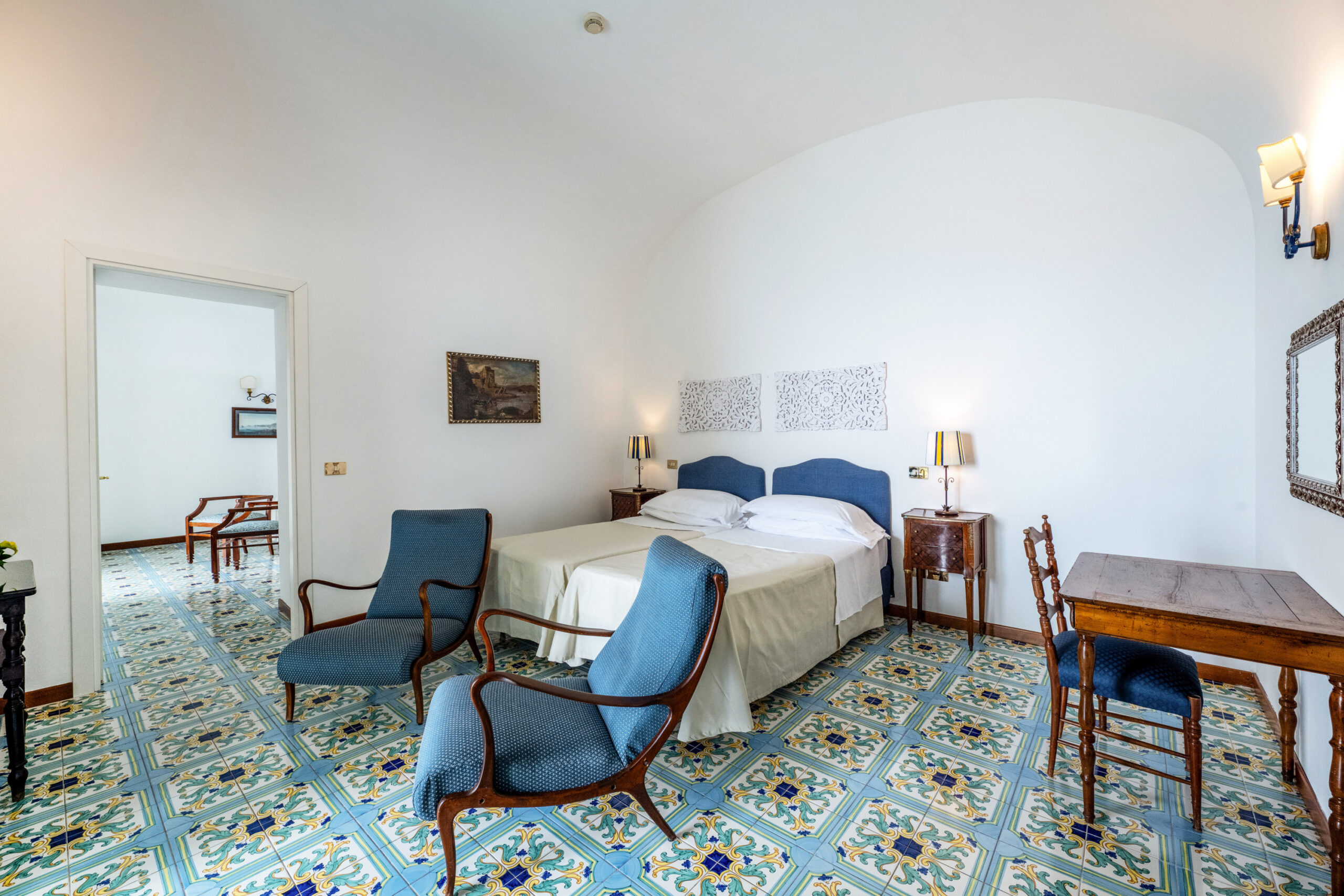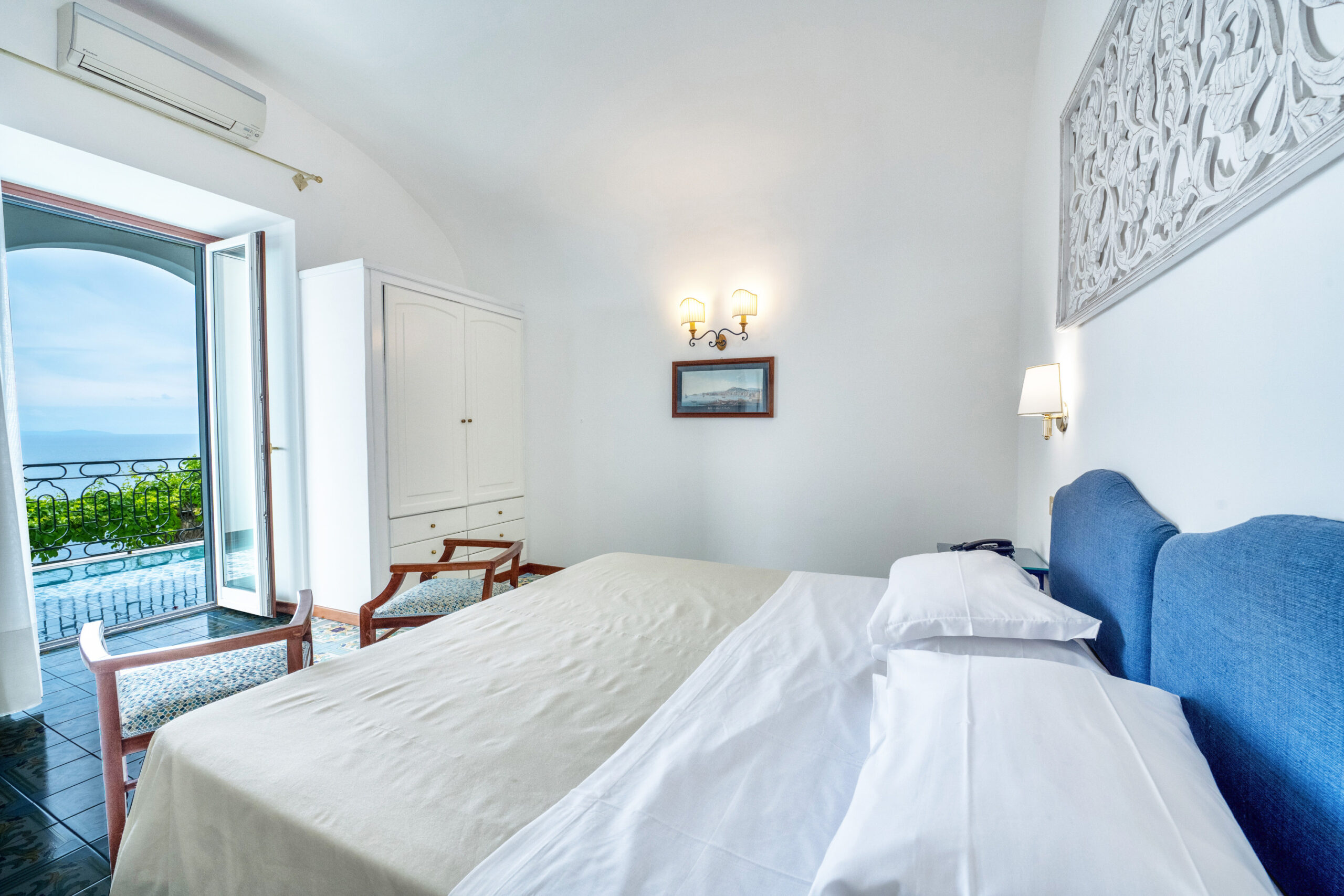 Camera per famiglia, composta da due camere comunicanti, divise da una porta, con un solo ingresso, bagno privato e terrazzo con vista sul mare